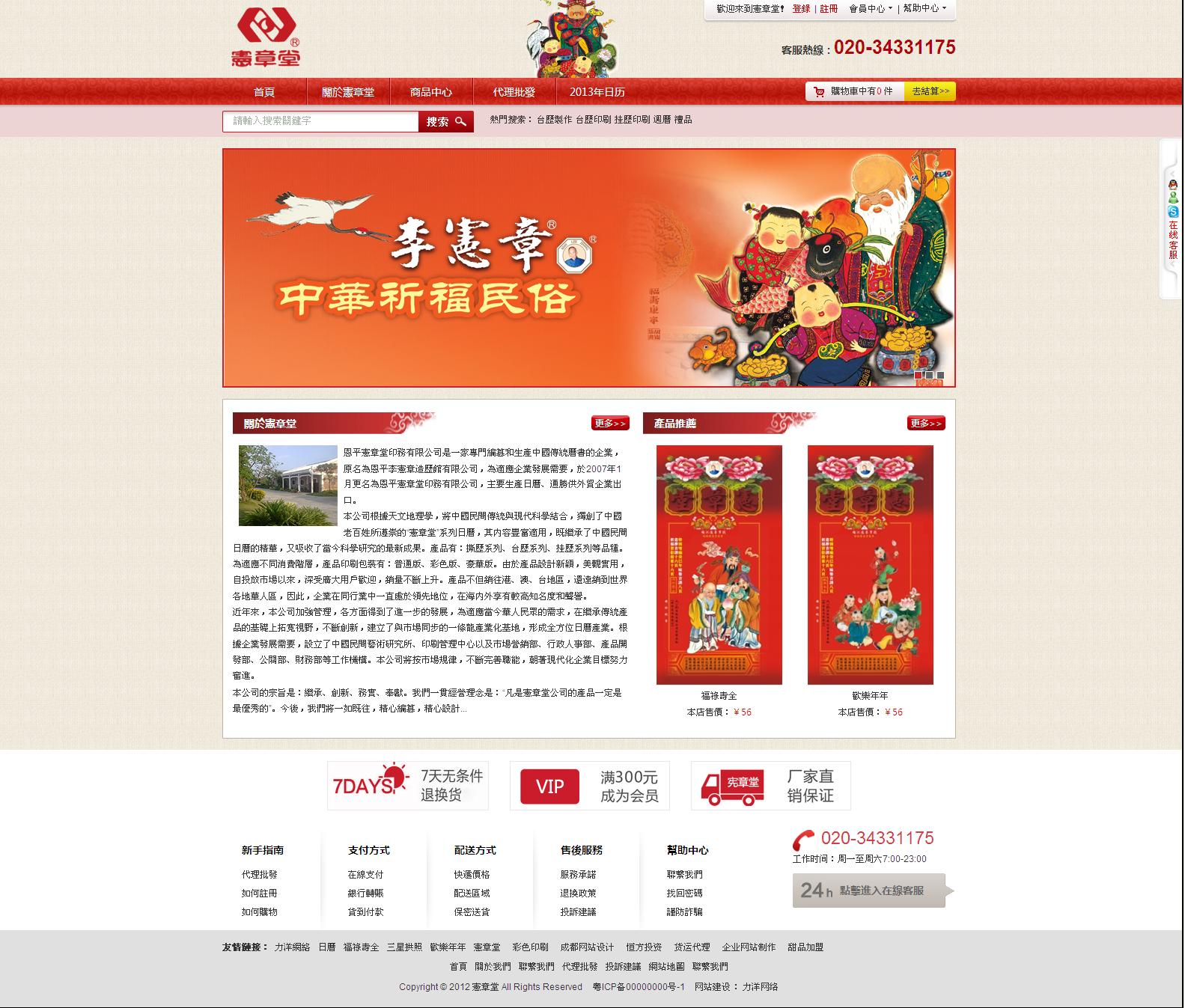 項目名稱:恩平憲章堂印務有限公司 簽定時間:2013-11-19 項目網址:http://www.xianzhangtang.com 項目簡介: 恩平憲章堂印務有限公司是一家專門編篡和生產中國傳統曆書的企業,原名為恩平李