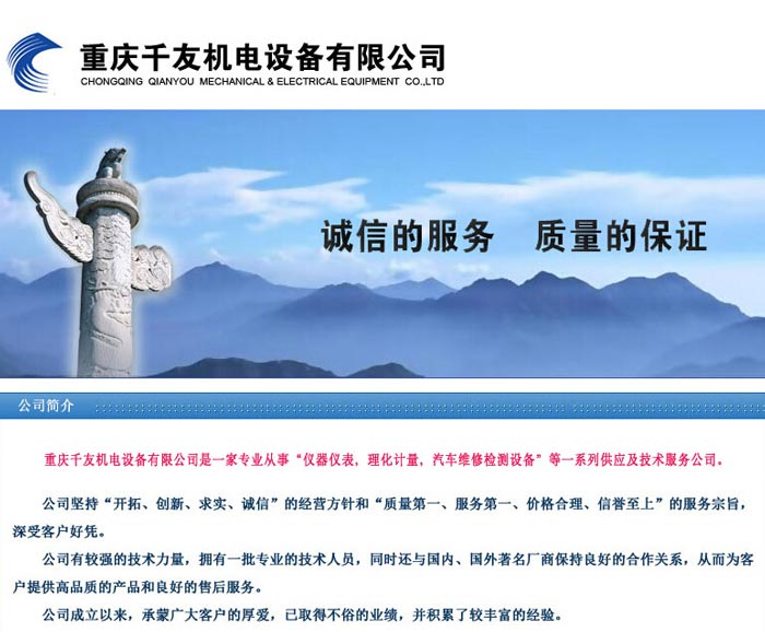 項目名稱:重慶千友機電設備有限公司 簽定時間:2014-2-25 項目網址:http://www.cqqyjd.com 項目簡介: