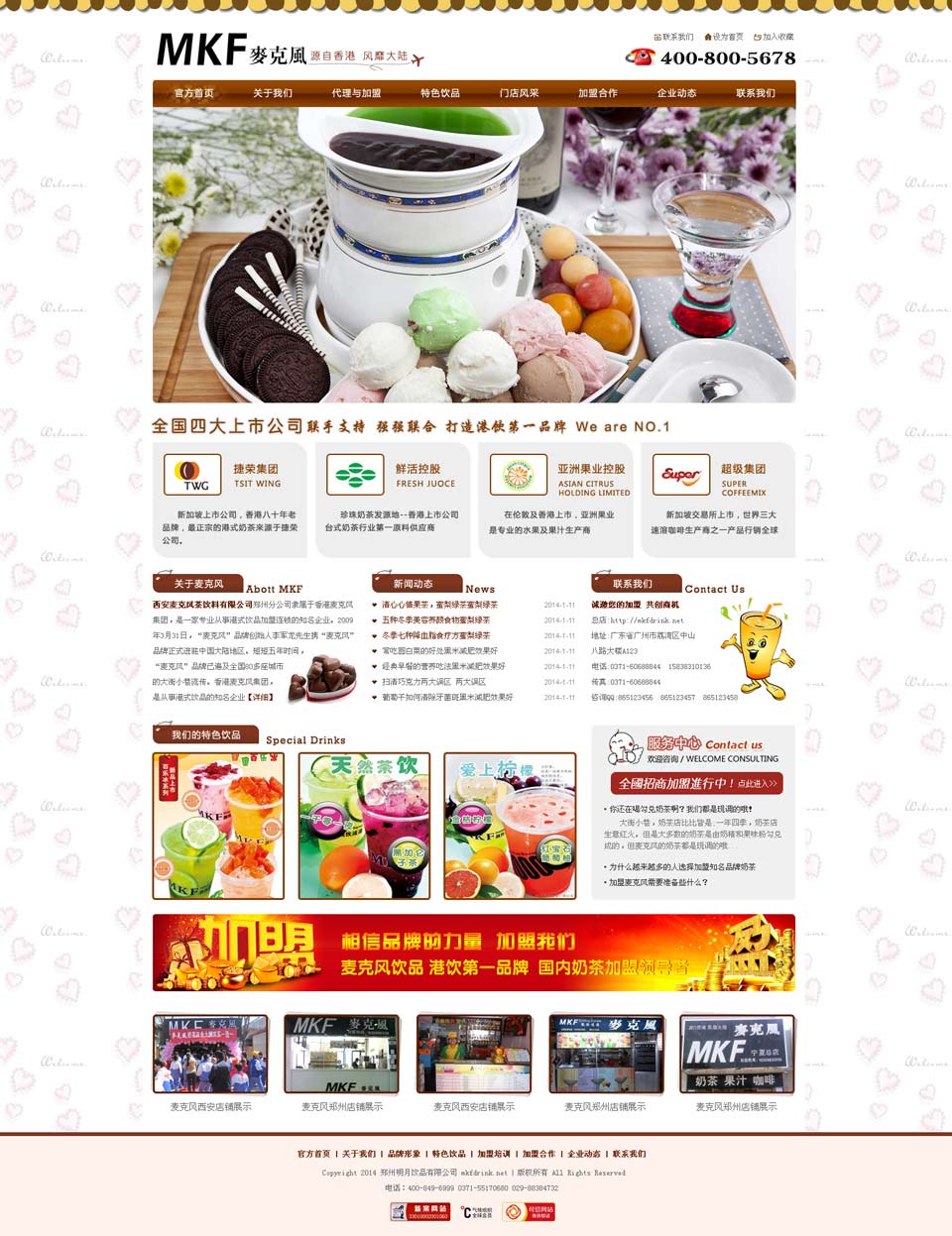 項目名稱:鄭州麥克風茶飲料有限公司 簽定時間:2014-3-26 項目網址:http://www.mkfdrink.net 項目簡介: 2009年3月31日,香港麥克風實業(集團)有限公司成功的進駐了中國大陸地區。在大陸