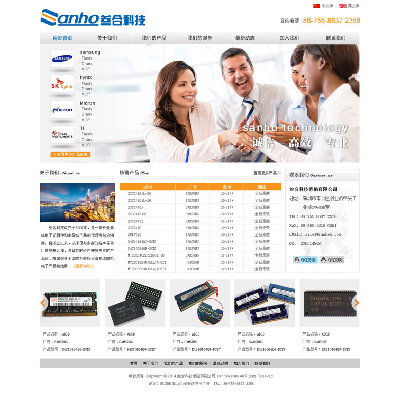 項目名稱:叁合科技香港有限公司 簽定時間:2014-11-19 項目網址:http://www.sanhe6.com 項目簡介: 叁合科技成立于2006年,是一家專業集成電子元器件和半導體產品的代理商與分銷商。自成立以來,以來便