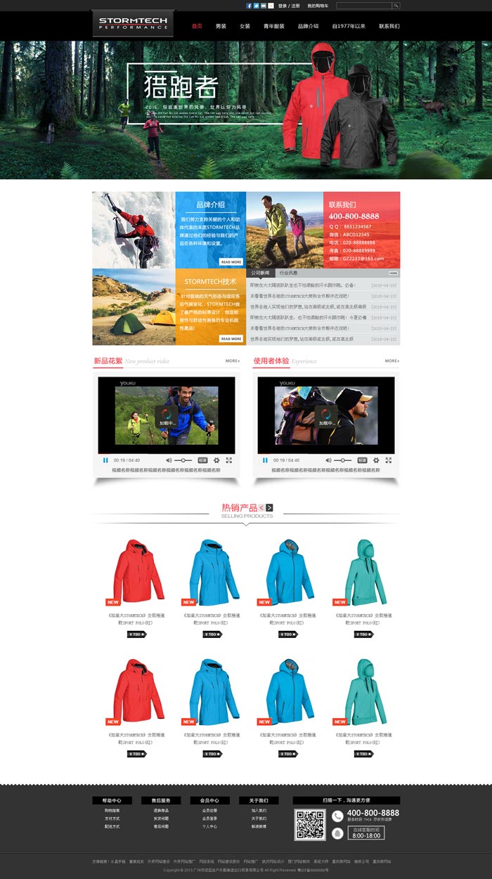 由于是戶外服裝網站,所以我們著重給人一種戶外的清新自然,運動的健康向上。色彩以黑色做為主色,并加以活潑生動的顏色色塊,整體風格鮮明,給人一種時尚運動的感覺。