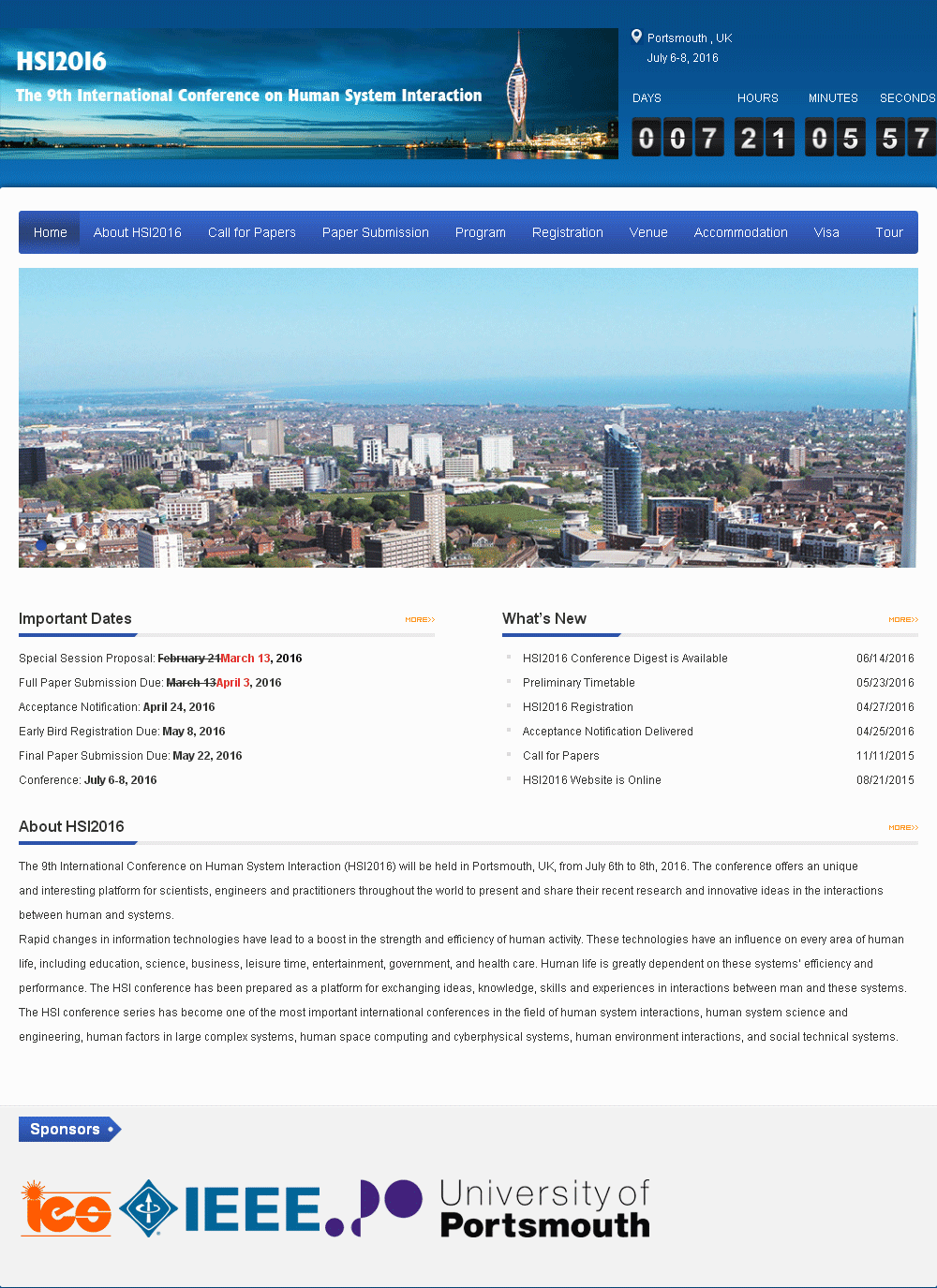 The 9th International Conference on Human System Interaction (HSI2016) is organized by University of Portsmouth. It will...
