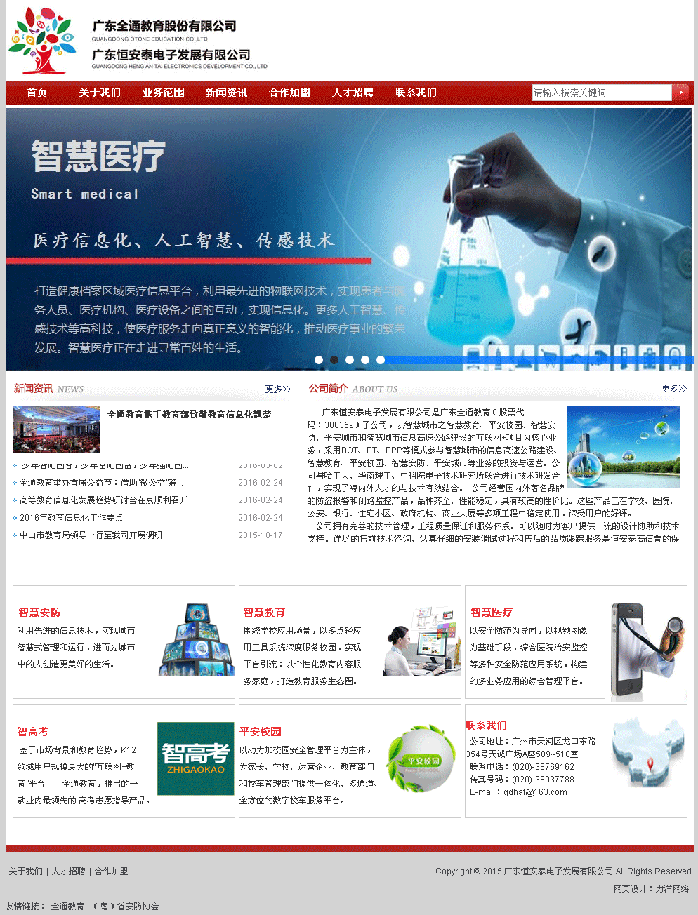 廣東恒安泰電子發展有限公司是廣東全通教育(股票代碼:300359)子公司,以智慧城市之智慧教育、平安校園、智慧安防、平安城市和智慧城市信息高速公路建設的互聯網+項目為核心業務,采用BOT、BT、PPP等模式參與智慧城市的信息高速公路建設、智...