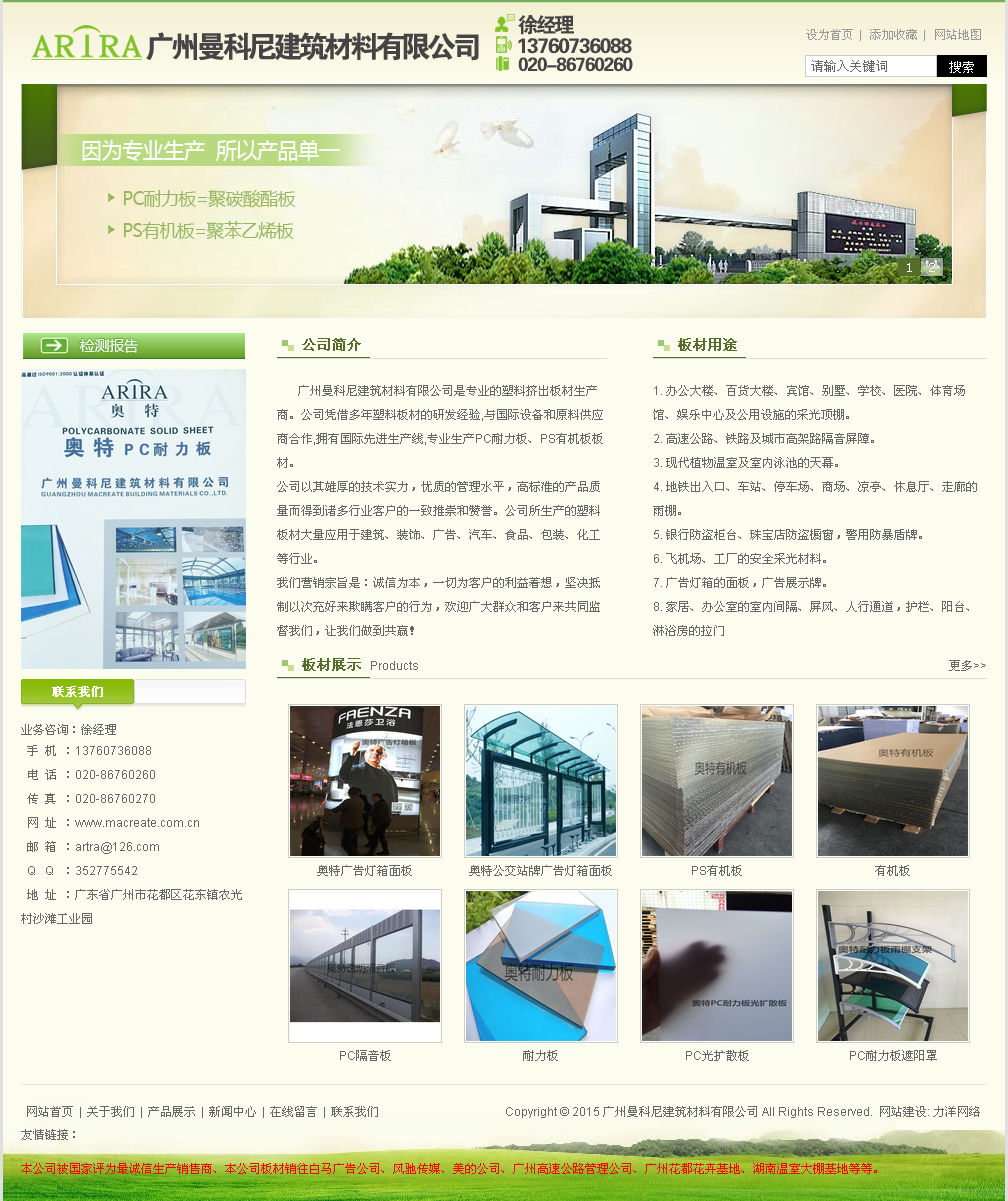 廣州曼科尼建筑材料有限公司以其雄厚的技術實力,優質的管理水平,高標準的產品質量而得到諸多行業客戶的一致推崇和贊譽。公司所生產的塑料板材大量應用于建筑、裝飾、廣告、汽車、食品、包裝、化工等行業。