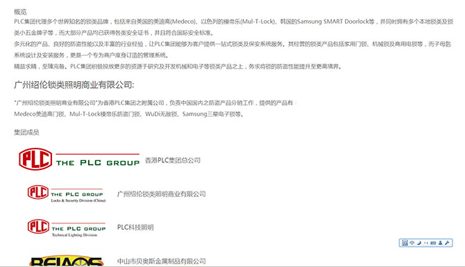 項目名稱:廣州紹倫鎖類照明商業有限公司網站開發 簽訂時間:2016-10-13 項目網址:www.plclock.com 公司簡介: