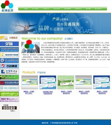 項目名稱:廣州歐博醫藥科技信息有限公司網站建設簽定時間:2009年8月19日備注:廣州歐博醫藥科技信息有限公司是股份制公司,主要從事新特藥、處方藥的全國代理推廣工作。公司自成立以來,始終本著以產品質量求生存,以科研技術求發展,以市場保護為共