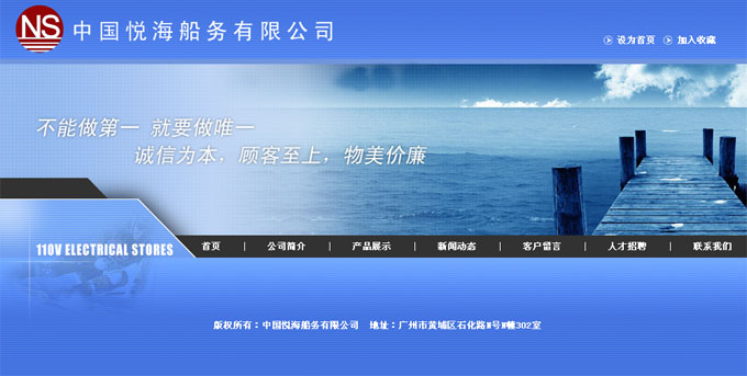 項目名稱:中國悅海船務有限公司網站建設簽定日期:2009年9月10日網站首頁效果圖: