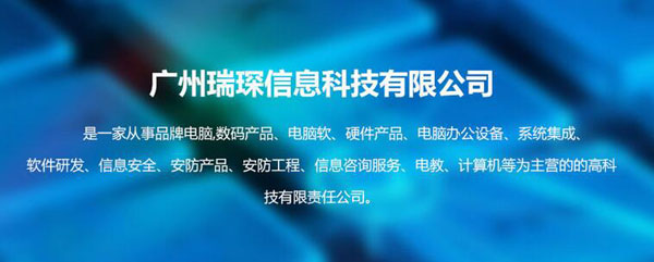 廣州瑞琛信息科技有限公司是一家從事品牌電腦,數碼產品、電腦軟、硬件產品、電腦辦公設備、系統集成、軟件研發、信息安全、安防產品、安防工程、信息咨詢服務、電教、計算機等為主營的的高科技有限責任公司。