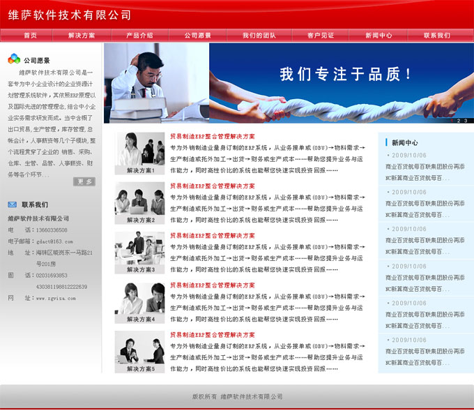 項目名稱:廣州維薩軟件技術有限公司網站制作簽定日期:2009年10月20日首頁效果圖: