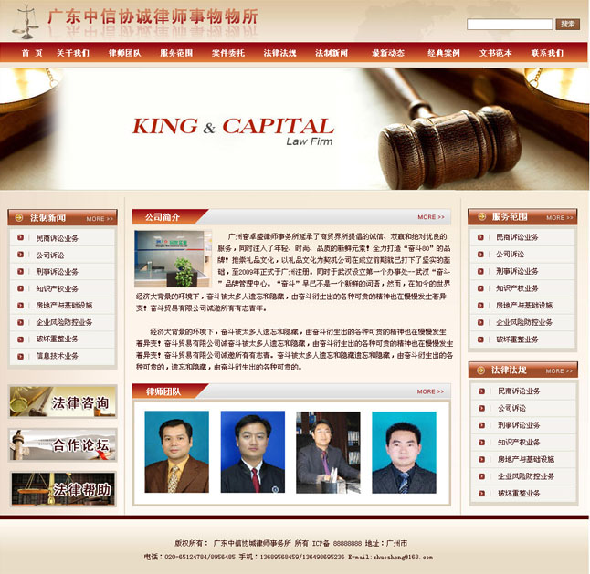 項目名稱:廣東中信協誠律師事務所網站建設簽定日期:2009年10月26日中信律師長期以來專業從事企事業單位改制、轉制、重組、并購、證券發行及上市等資本運作領域的法律服務工作,積累了豐富的實踐經驗,并取得了明顯的成績;多年來,中信律師曾代表發