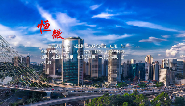 恒微主要從事研發、制造機器人系統集成、應用,如機器人碼垛、焊接、上料、裝配、噴涂;研發各種機械手,如上料機械手、磨床機械手、沖床機械手、搬運機械手;并客戶提高行業解決方案,工廠整線系統整合,如全自動包裝生產線,同時可以客戶研制、生產各種自動化非標設備,如濕水牛皮紙全自動封箱機、厚度檢測設備、自動循環過濾水箱等等。應用領域涉及石油、化工、電力、冶金、輕紡、食品、醫藥、環保等;產品技術服務覆蓋全國各地。
