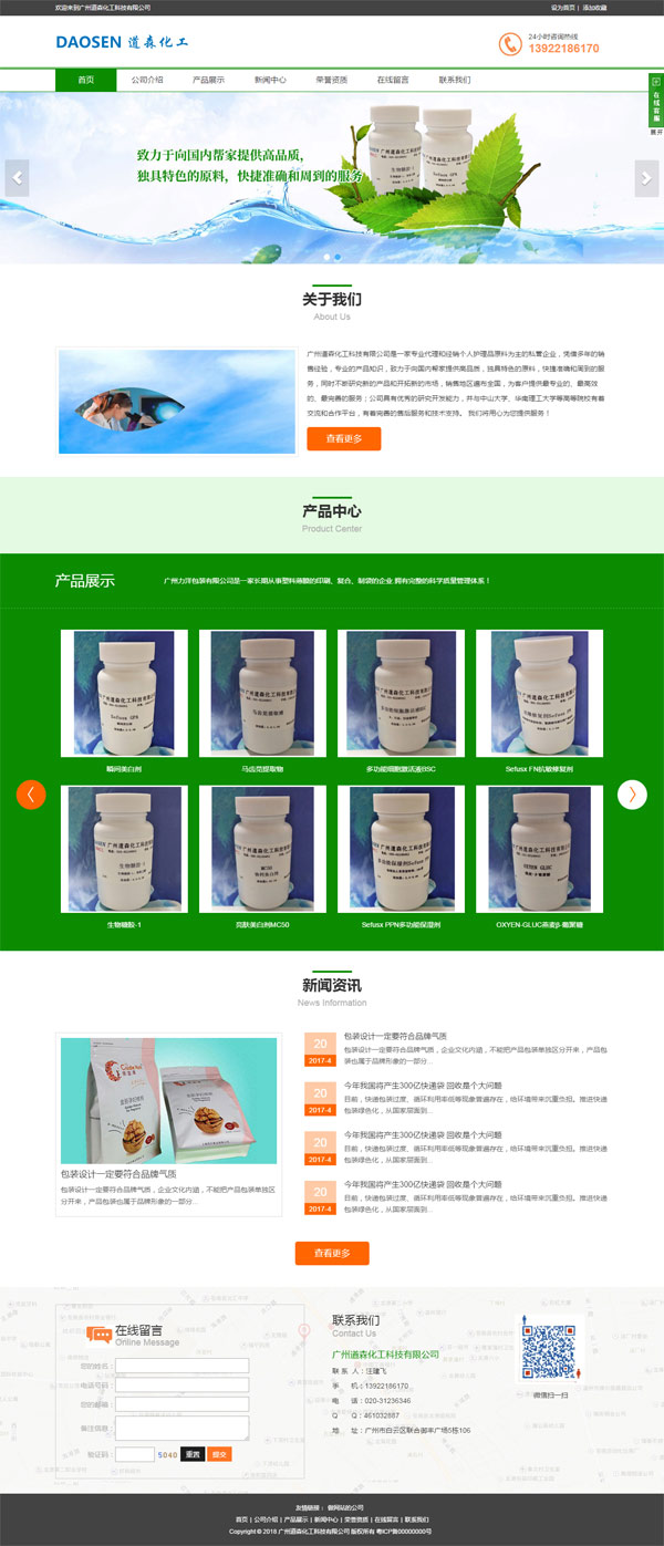 項目名稱:廣州道森化工科技有限公司網站開發 簽訂時間:2018-11-29 項目網址:www.gzdaosen.cn 公司簡介: 廣州道森化工科技有限公司是一家專業代理和經銷個人護理品原料為主的私營企業,憑借多年的銷售經驗,專業的產品