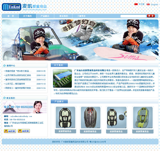 項目名稱:麥凱嬰童用品科技有限公司網站建設簽定日期:2010年3月22日公司簡介:廣東汕頭麥凱嬰童用品科技有限公司是一家集設計、生產和銷售汽車兒童安全座椅為一體的大型企業。公司成立于2006年,秉承“為全世界兒童提供最安全、舒適、美觀和實用