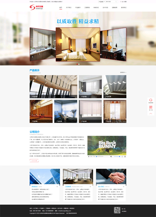 項目名稱:北京時代宏圖科技有限公司網站制作 項目網址:www.shidaihongtu.com 公司簡介: 北京時代宏圖科技有限公司位于中國北京,公司創建于年2009年。是一家專業生產高品質窗飾產品和配件的廠家。技術力量雄厚,本公司已