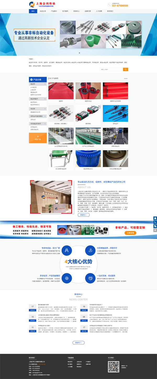 項目名稱:上海企鴻工業器材有限公司建站 項目網址:www.shqhcd.com 公司簡介: 上海企鴻工業器材有限公司自成立以來,一直致力于輸送帶和同步帶、熔噴布系列以及直線傳動類產品的研發、生產和銷售,立志成為傳動產品企業的領跑者。