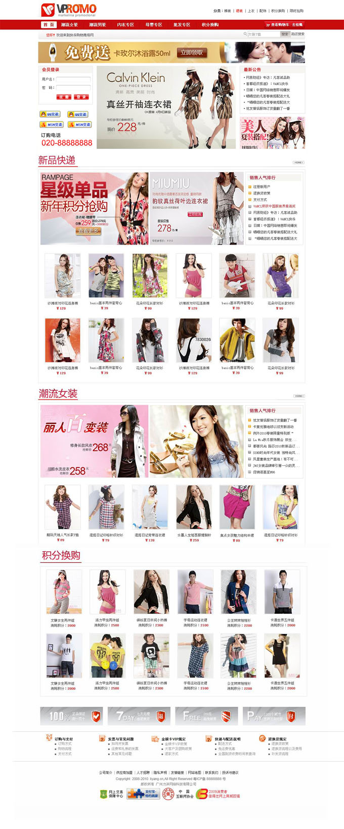 項目名稱:服裝在線銷售網網站建設簽定日期:2010年6月2日網站首頁效果: