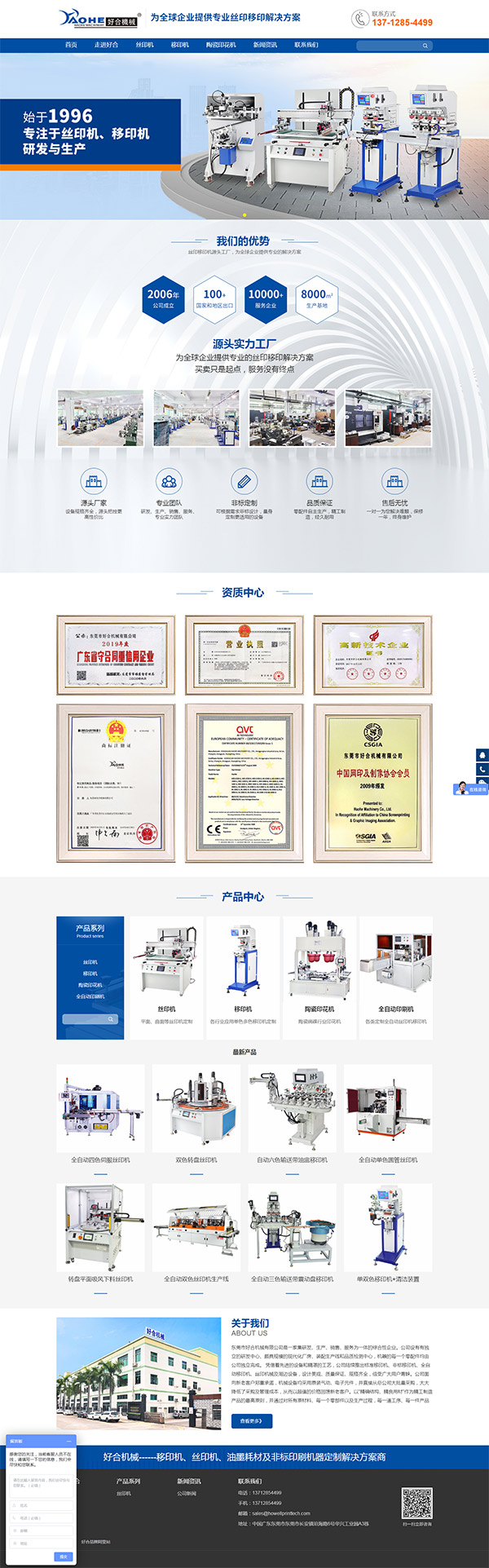 項目名稱:東莞市好合機械有限公司網站制作 項目網址:www.dghaohe.cn 公司簡介: 東莞市好合機械有限公司是一家集研發、生產、銷售、服務為一體的綜合性企業。公司設有有獨立的研發中心、頗具規模的現代化廠房、裝配生產線和品質檢