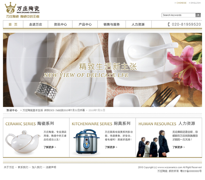廣州萬莊陶瓷酒店用品有限公司承傳了東方陶瓷文化的精髓,吸收傳統工藝,引進先進科技。獨特的器皿營造獨特的飲食天地,展示豐富多彩的生活品味。精美絕倫的餐具將美食以優雅的方式上桌,為各種餐飲活動增添時尚氣派!