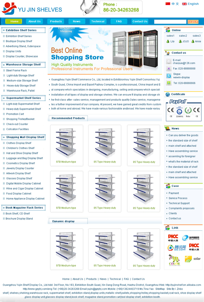 項目名稱:廣州宇金貨架有限公司外貿營銷網站建設簽定日期:2010年8月20日廣州市宇金貨架有限公司位于廣州國際會展中心琶洲會展南四路、人杰地靈交通便利,是一家專注致力于展柜和貨架設計、研發、制造、銷售及售后長期綜合服務的終端生產商。公司擁有