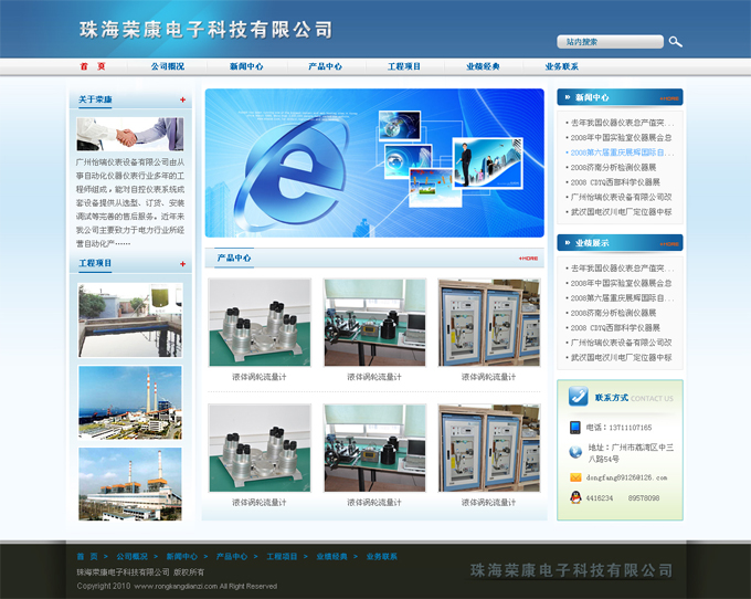 項目名稱:珠海榮康電子科技有限公司網站建設簽定日期:2010年10月20日網站網址:www.rongkangdianzi.com公司簡介:珠海榮康電子科技有限公司是一家從事電力、石化、冶金、樓宇自控行業自動化儀表生產、銷售的專業公司,總部位