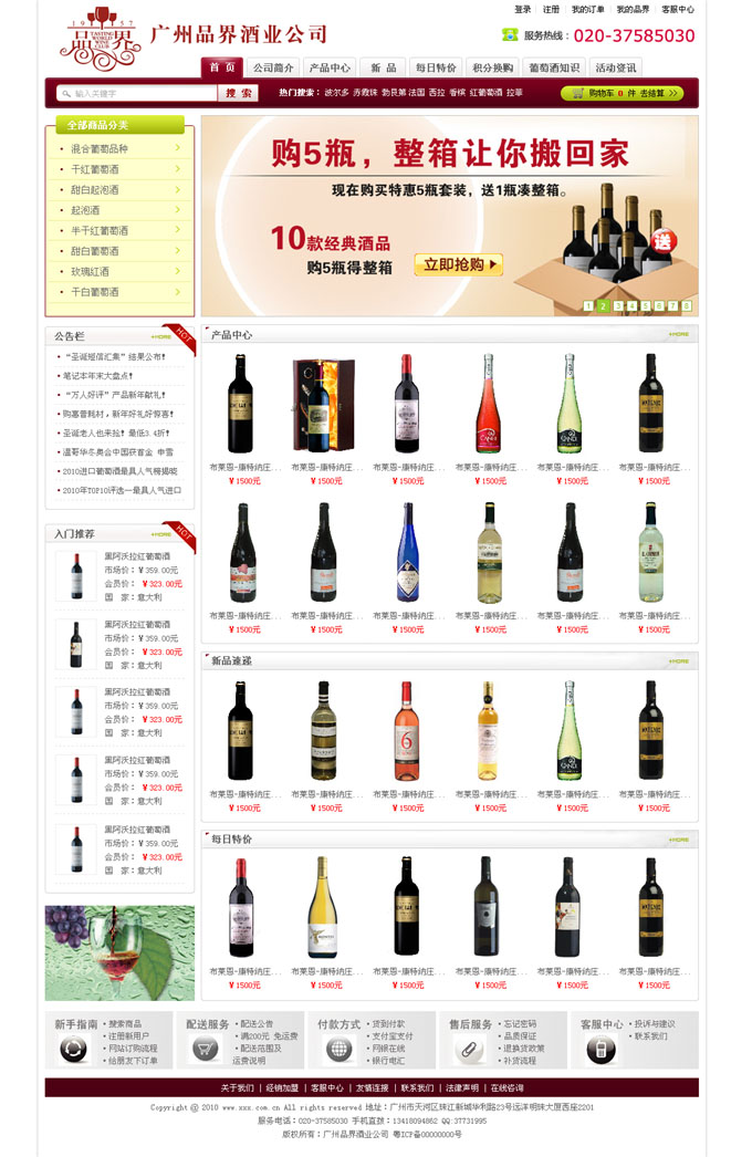 項目名稱:廣州品界酒業有限公司網站建設簽定日期:2010年12月22日網站首頁設計稿: