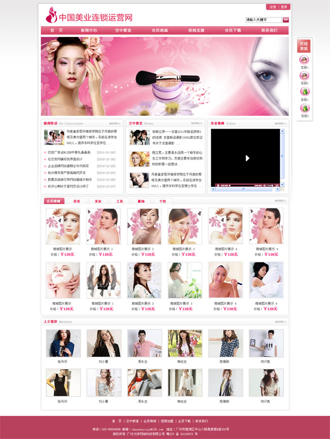 項目名稱:中國美業連鎖運營網網站制作簽定日期:2011年1月11日網站首頁設計稿:(縮略圖)
