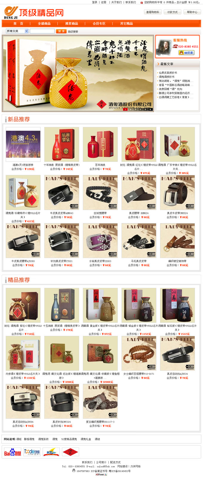 項目名稱:廣州鼎極商貿有限公司網站建設簽定日期:2011年1月12日網站網址:www.55ub.com廣州鼎極商貿有限公司于2010年底取得酒鬼酒供銷有限責任公司簽約代理商,負責銷售酒鬼酒供銷有限責任公司生產的酒鬼酒系列、湘泉系列、洞藏系列