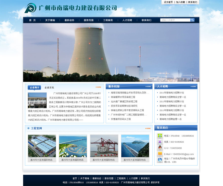 項目名稱:廣州南瑞電力建設有限公司網站建設簽定日期:2011年7月13日網站首頁設計稿:(縮略圖)