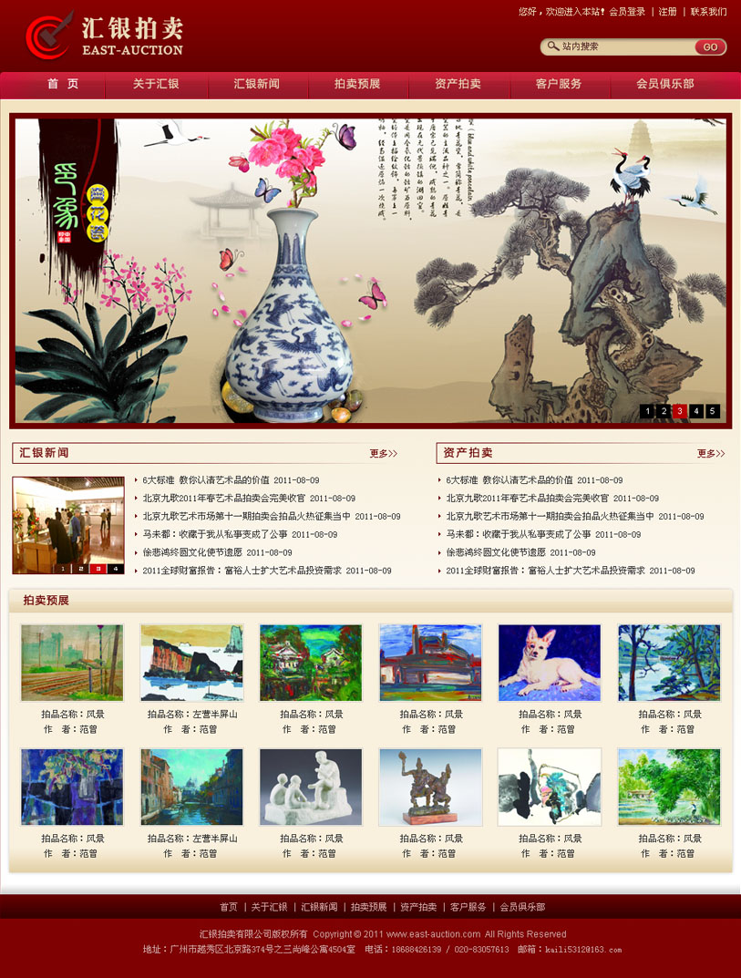 項目名稱:深圳匯銀拍賣有限公司網站建設簽定日期:2011年8月4日網站首頁設計稿(縮略圖):