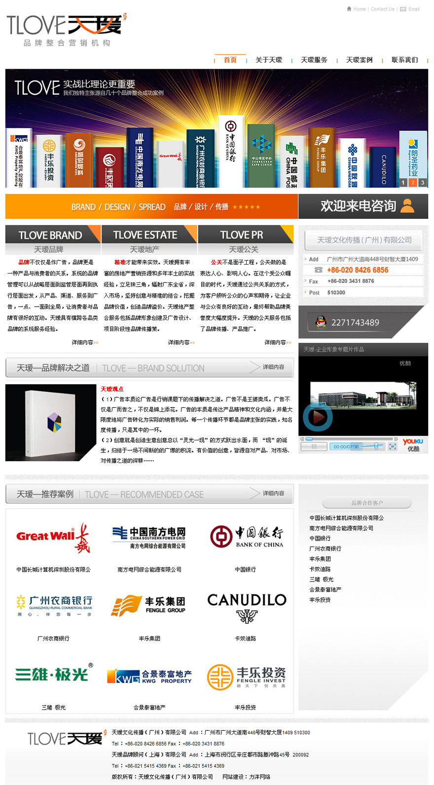項目名稱:天璦品牌顧問有限公司網站建設簽定日期:2011年8月26日公司網址:http://www.tlover-ad.com首頁設計效果:(縮略圖)