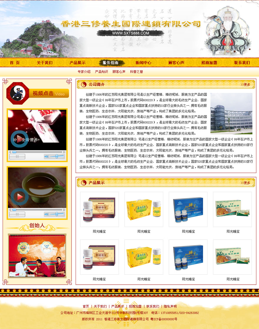 項目名稱:香港三修養生國際連鎖有限公司網站建設簽定日期:2011年9月27日網站首頁效果圖: