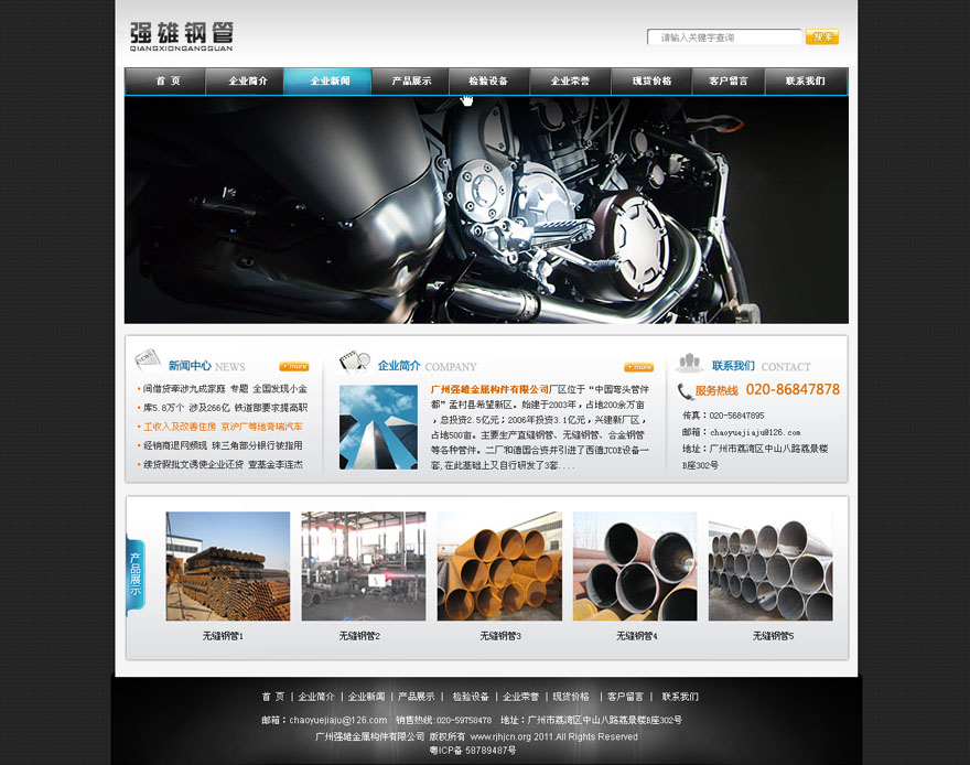 項目名稱:廣州強雄金屬構件有限公司網站建設簽定日期:2011年9月28日公司網址:http://www.steelpiping.net公司簡介:公司始成立于一九八三年,以鋼管內外防腐為主。在經過多年的摸索發展后,在一九九三成立:“廣州市白云