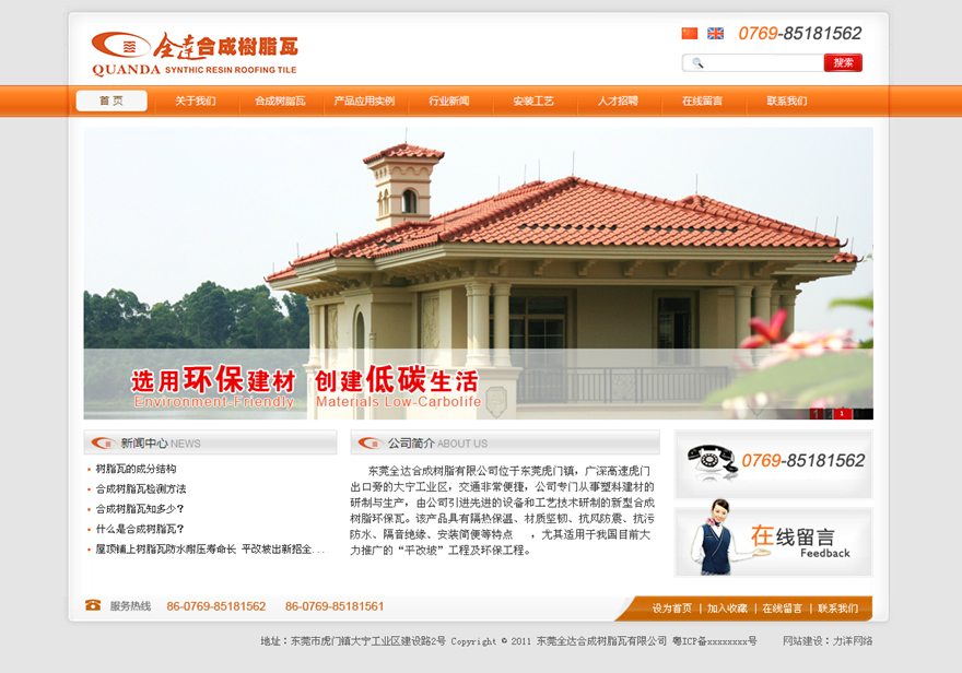 東莞全達合成樹脂有限公司位于東莞虎門鎮,廣深高速虎門出口旁的大寧工業區,交通非常便捷,公司專門從事塑料建材的研制與生產,由公司引進先進的設備和工藝技術研制的新型合成樹脂環保瓦。該產品具有隔熱保溫、材質堅韌、抗風防震、抗污防水、隔音絕緣、安裝簡便等特點,尤其適用于我國目前大力推廣的“平改坡”工程及環保工程。