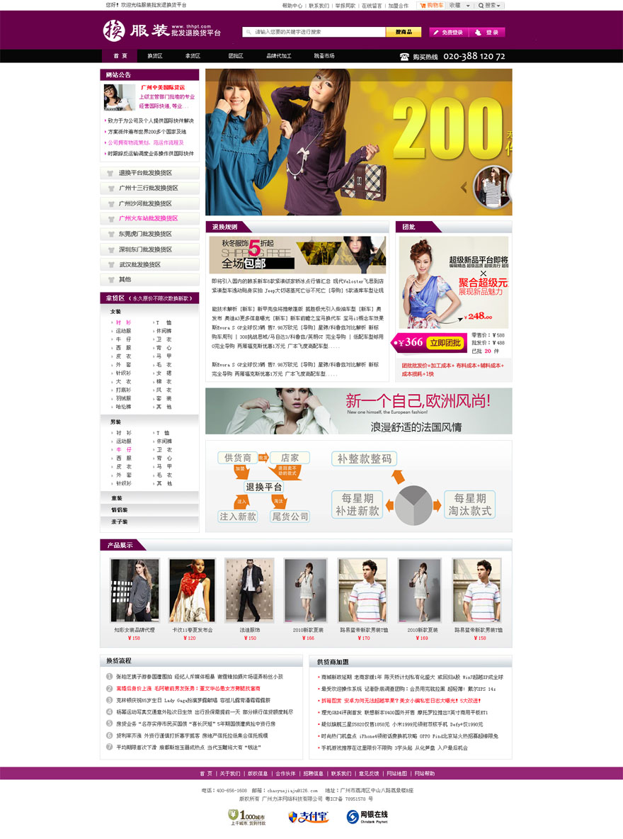 項目名稱:廣州服裝批發退換貨平臺網站建設簽定日期:2011年10月15日網站首頁設計稿:(縮略圖)