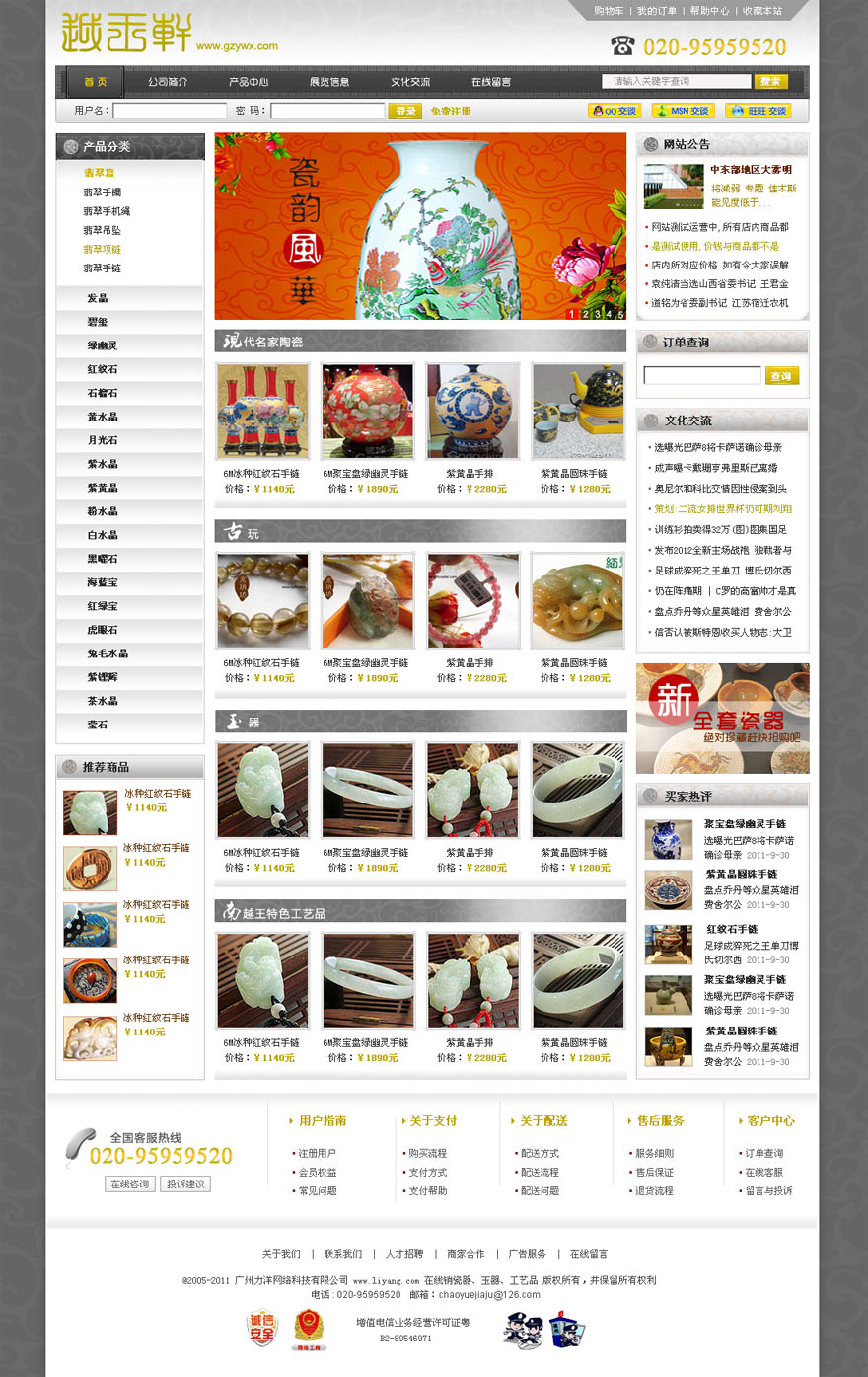項目名稱:廣州越王軒網站建設簽定日期:2011年10月31日注冊網址:http://www.gzywx.com公司簡介:越王軒是廣州工藝美術協會理事單位,實體店位于廣州西漢南越王博物館內,也是網站的主要倉儲和配送中心,并提供藏品展覽、上門提