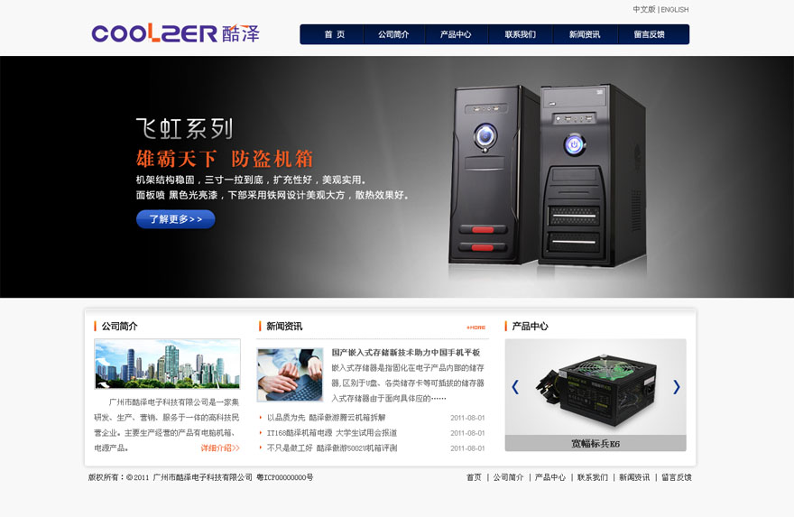 項目名稱:廣州市酷澤電子科技有限公司網站建設簽定日期:2011年11月11日注冊網址:http://www.coolzer.net公司簡介:廣州市酷澤電子科技有限公司是一家集研發、生產、營銷、服務于一體的高科技民營企業。主要生產經營的產品有