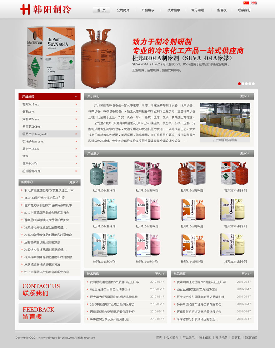 項目名稱:廣州韓陽制冷設備有限公司網站建設簽定日期:2011年11月12日注冊網址:http://www.refrigerants-china.com/公司簡介:韓陽的前身是制冷中心海珠北的一個供貨倉庫,06年韓陽注冊成立了自己的門市經營部