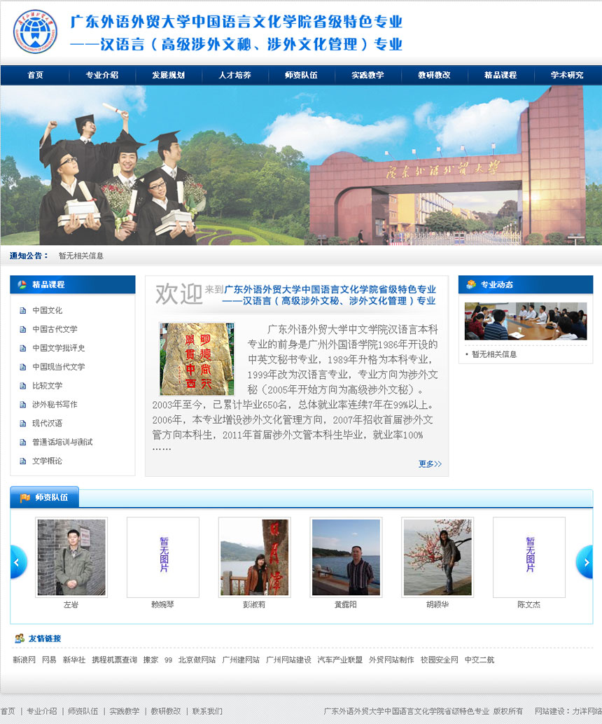 項目名稱:廣東外語外貿大學網站建設簽定日期:2011年11月29日網址:http://www.gwzwhyy.com/ 廣東外語外貿大學中文學院漢語言本科專業的前身是廣州外國語學院1986年開設的中英文秘書專業,1989年升格為本科專業,