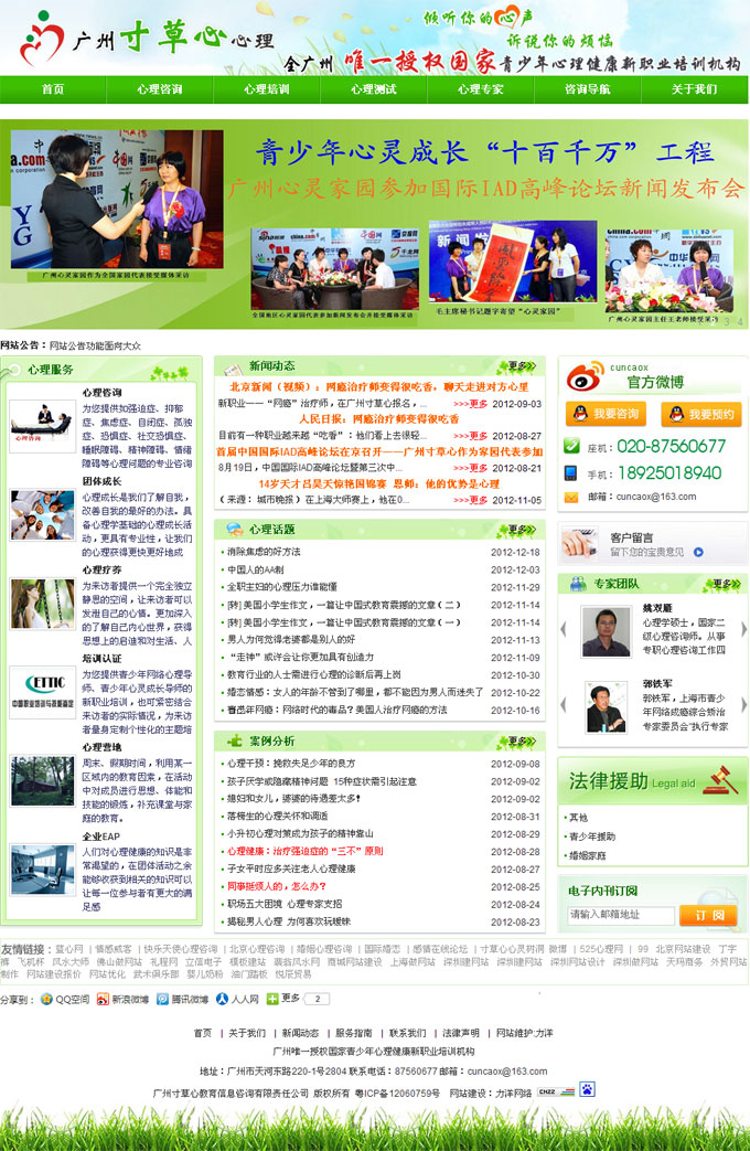 項目名稱:廣州寸草心教育信息咨詢有限責任公司網站建設簽定日期:2012年3月21日網址:http://www.87560677.com/廣州寸草心教育信息咨詢有限責任公司是一家集心理職業崗位培訓、心理咨詢、心理調查研究的一個綜合性心理機構。