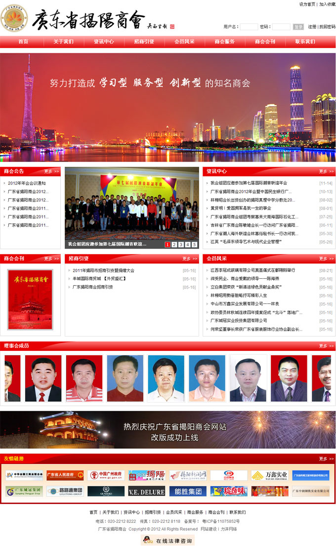 項目名稱:廣東省揭陽商會網站建設簽定日期:2012年4月26日網址:http://www.jycc.org/廣東省揭陽商會在省委省政府、揭陽市委市政府等有關部門的關心和支持下,由熱衷于公益事業、支持家鄉建設的揭籍各界精英自愿組成,商會由陳海