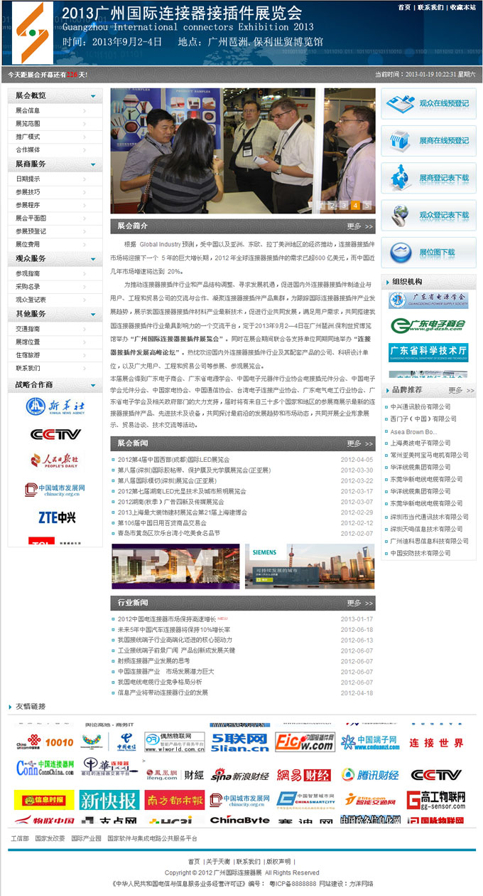 項目名稱:2013廣州連接器展網站建設簽定日期:2012年5月31日網址:http://www.sce-expo.com為推動連接器接插件行業和產品結構調整、尋求發展機遇,促進國內外連接器接插件制造業與用戶、工程和貿易公司的交流與合作、凝聚