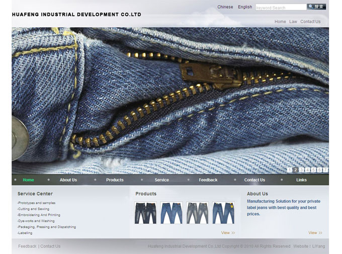 項目名稱:HuafengIndustrialDevelopmentCo.,Ltd網站制作簽定日期:2012年6月13日網址:http://www.choicejeans.com/ ManufacturingSolutionforyourp