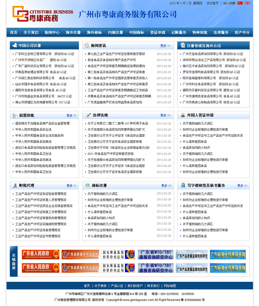 項目名稱:廣州市粵康商務服務有限公司網站建設簽定日期:2013年1月7日網址:http://www.cnkonggz.com/“廣州市粵康商務服務有限公司”是“中港注冊會計服務有限公司”在中國
