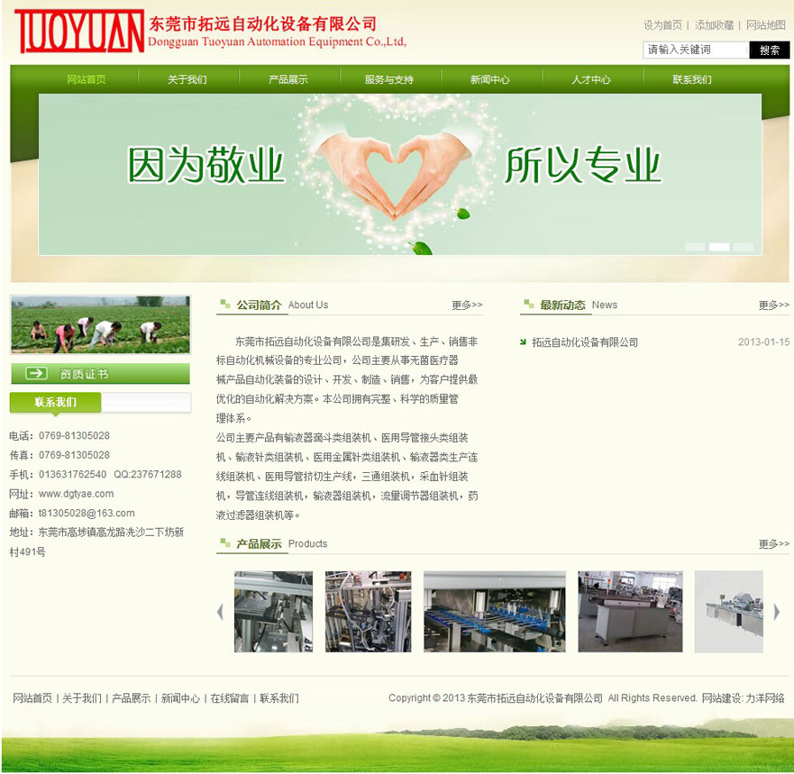 項目名稱:東莞市拓遠自動化設備有限公司網站建設簽定日期:2013年3月26日網址:http://www.dgtyae.com東莞市拓遠自動化設備有限公司是集研發、生產、銷售非標自動化機械設備的專業公司,公司主要從事無菌醫療器械產品自動化裝備