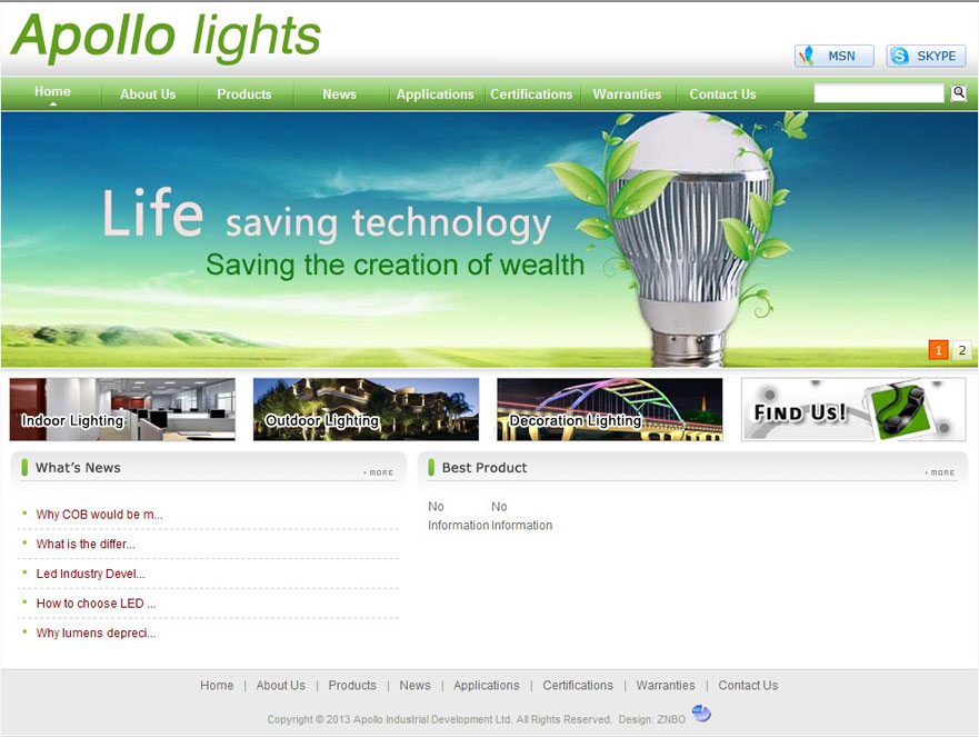 項目名稱:阿波羅實業發展有限公司網站建設簽定日期:2013年3月27日網址:http://www.apollo-lights.comApolloIndustrialDevelopment.,Ltdwasfoundin2009.Withmor