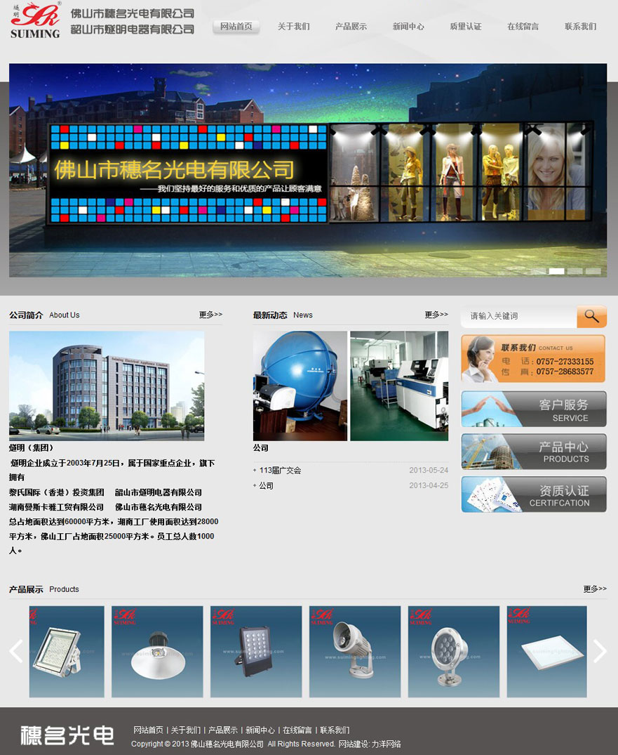 項目名稱:佛山穗名光電網站建設簽定日期:2013年4月2日網址:http://www.suiminglighting.com佛山穗名光電有限公司,韶山市燧明電器有限公司專注于LED燈具的研發、生產、銷售。和廣東佛山大學、湖南工業大學、中南大
