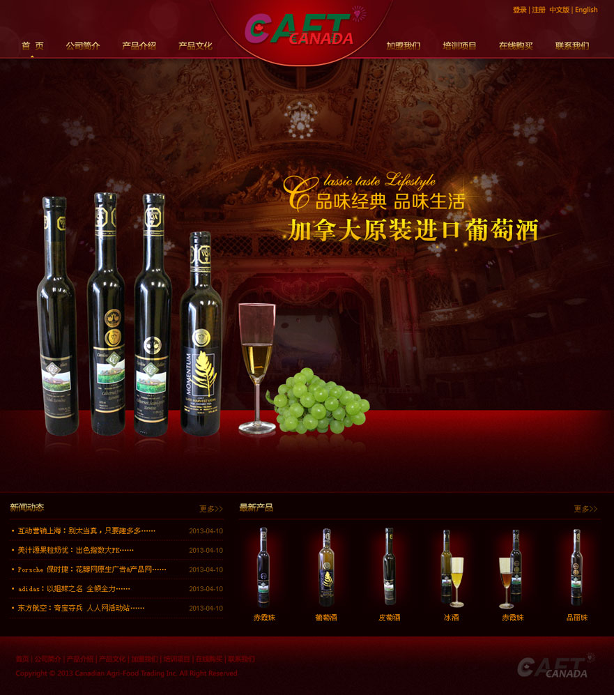項目名稱:加拿大農副產品貿易公司網站建設簽定日期:2013年4月7日網址:http://www.canadacaft.com加拿大農副產品貿易公司CAFT(CanadianAgri-FoodTradingInc.)成立于2013年,坐落于全