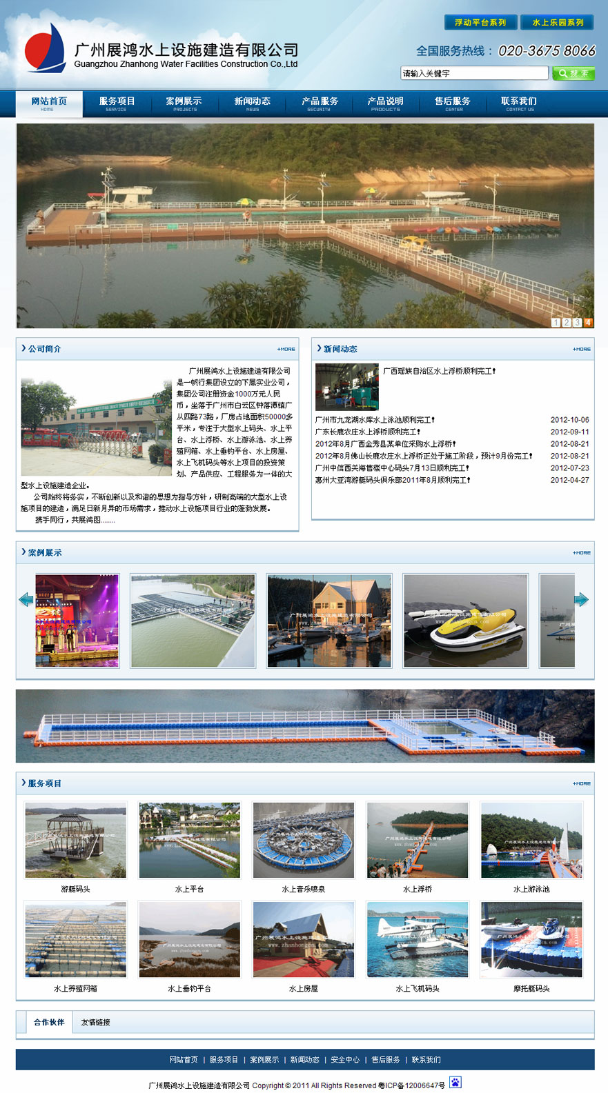 項目名稱:展鴻水上網站建設簽定日期:2013年4月10日網址:http://www.zhanhongcn.com廣州展鴻水上設施建造有限公司是一家專注于大型水上碼頭、水上平臺、水上浮橋、水上房屋、水上闖關、水上滑梯、水上游泳池、造浪設備、水