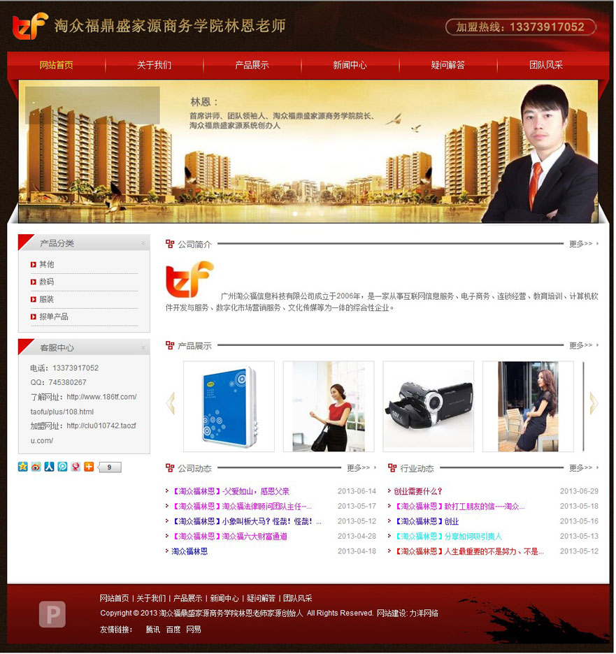 項目名稱:廣州創意園網站建設簽定日期:2013年4月15日網址:http://www.tozhfu.com淘眾福鼎盛家源是建立在,一言九鼎、追求誠信之上的一支團隊。鼎盛家源有著共同目標、共同價值觀的隊伍!家園所有成員大家相互幫助、相互鼓勵,