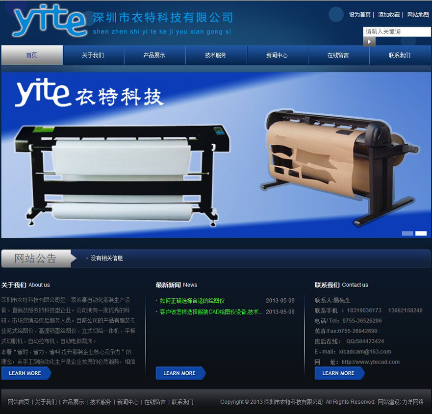 項目名稱:深圳市衣特科技有限公司網站建設簽定日期:2013年4月17日網址:http://www.ytecad.com深圳市衣特科技有限公司是一家從事自動化服裝生產設備、直銷及服務的科技型企業。公司擁有一批優秀的科研、市場營銷及售后服務人員